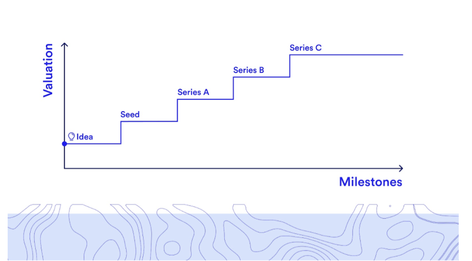 Startup valuations increase as a step function.