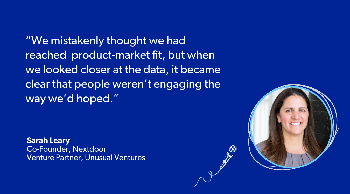 I learned this lesson the hard way. Before Nextdoor became a publicly traded company with millions of users, we were a completely different business. Our original company was Fanbase, a fledgling startup with a big idea to disrupt the sports information industry. We had all the “right” ducks in a row: a committed founding team, top investors, and exciting early traction. But even with a peak of 15 million monthly users, Fanbase failed to grow beyond that point. We mistakenly thought we had reached product-market fit, but when we looked closer at the data, it became clear that people weren’t engaging the way we’d hoped. They visited and bounced.